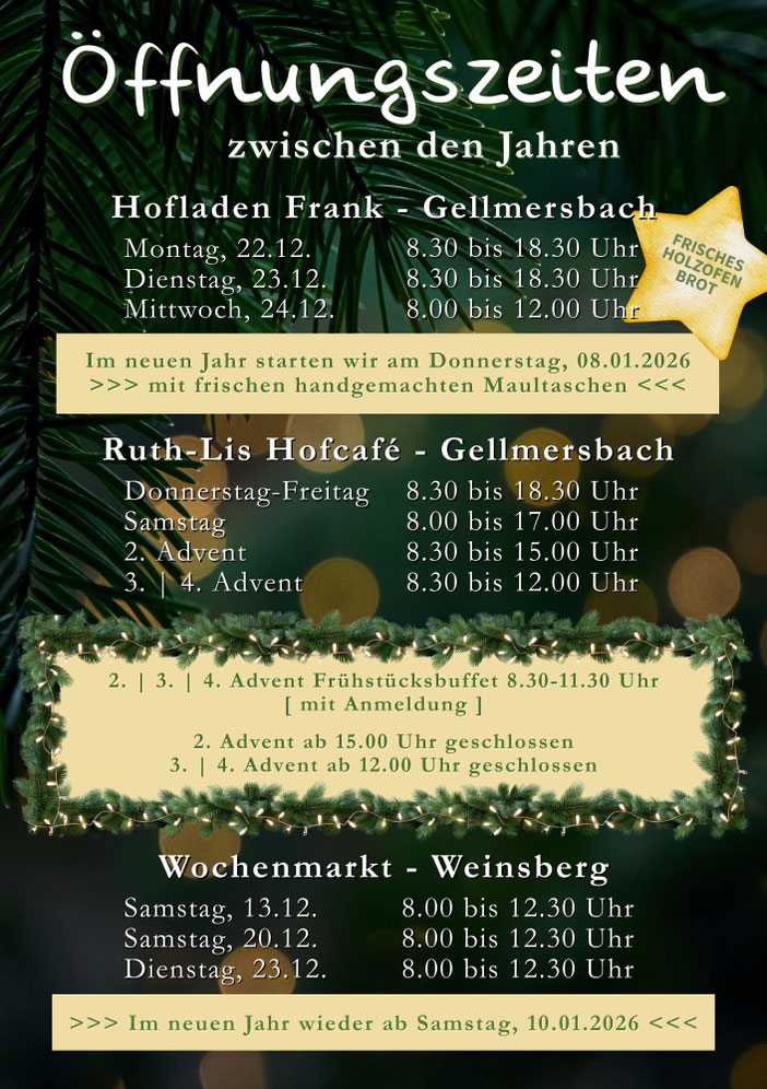 Früchte Frank/Ruth-Lis Hofcafé/Hofladen Frank/Biohof Frank stehen NICHT in Verbindung mit der Reitanlage Schmid.