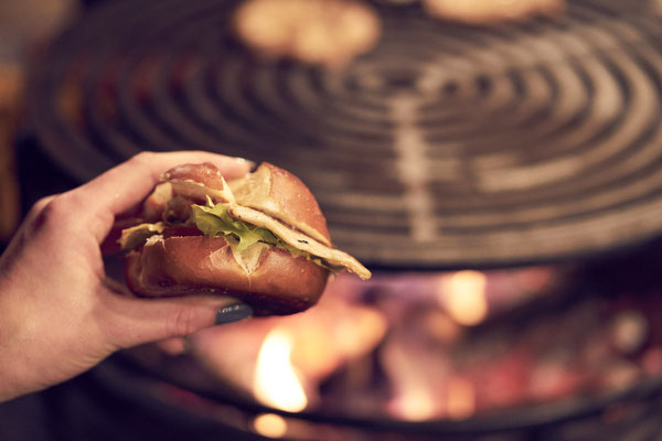 Dazu servieren wir roten Couscous, Dips, Holzofenbrot, und Rohkost-Salate. Abschließend bereiten wir ein Dessert auf dem Grill zu.